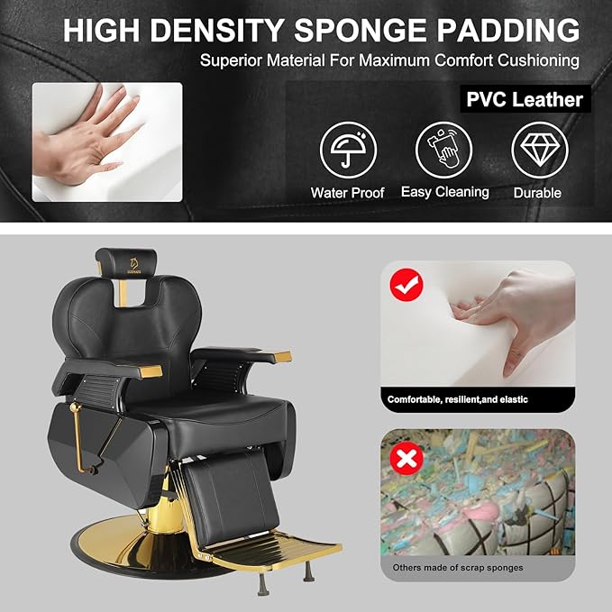 - 【Easy to Assemble】 The swivel barber chair is easy to install, the manual contains detailed installation steps, and all accessories are included in the carton. The whole structure of the barber chair is made of aluminum and steel, which makes the chair more stable and firm. Heavy duty hydraulic pump with a maximum support weight of 440 pounds.