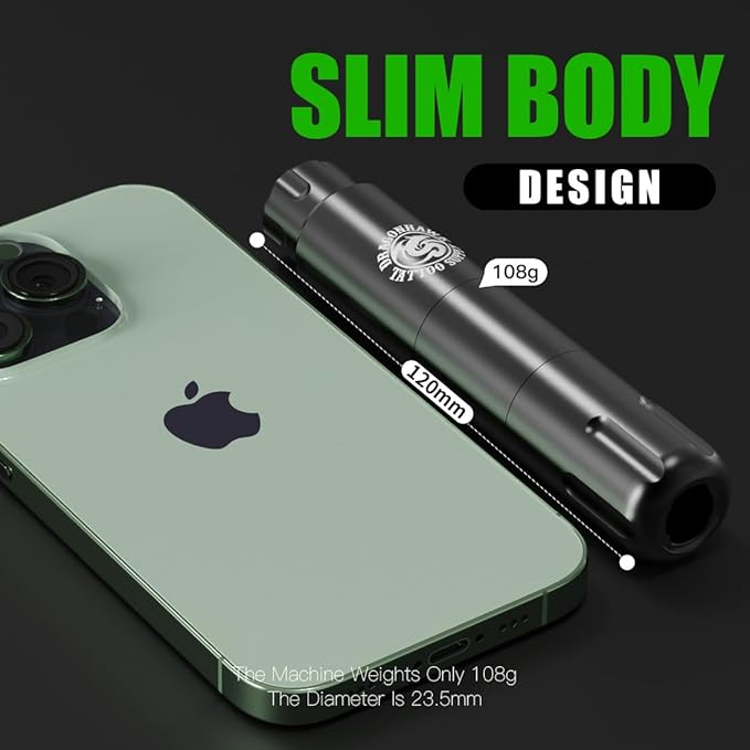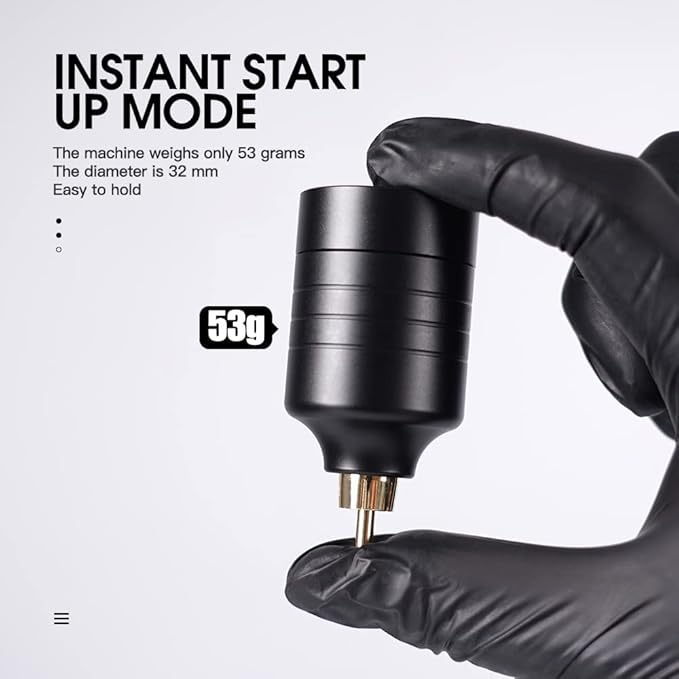- Cordless Tattoo Kit: Enjoy maximum freedom with the cordless operation; equipped with a precision DC motor, it's lightweight(108 g), quiet, stable, and features a 3.0 mm stroke for perfect balance between lining and shading, enhancing tattooing skills