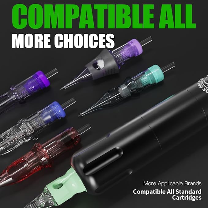 - Universal Compatibility: This pen is compatible with all cartridge needle types, its direct drive system delivers enhanced power, making it perfect for both liners and shaders, ensuring strong performance across a variety of tattooing techniques