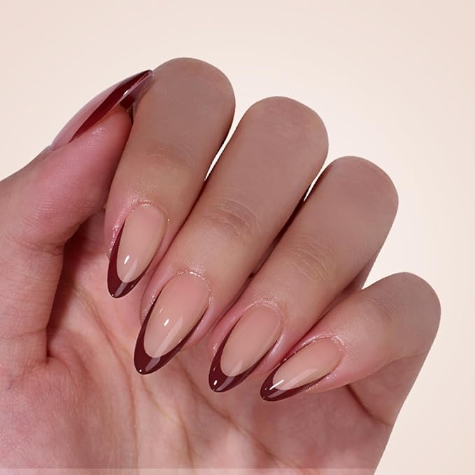 BTArtboxnails XCOATTIPS Fall Press on Nails - French Tip Press on Nails, Medium Almond Nail Tips False Nails, Skin Tones Soft Gel Nails, Soak Off Acrylic Fake Nails Art Extensions