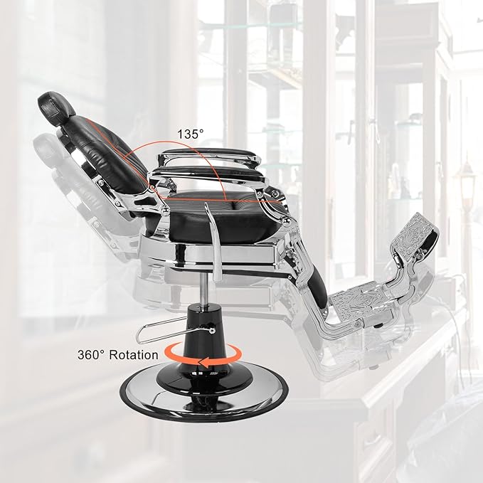 - 【Height & Tilt Adjustable】The hair salon chair can be rotated 360 degrees and the backrest can be tilted up to 135°. The heavy-duty hydraulic pump on the bottom is adjustable 7 inches high for flexible adjustment as needed.