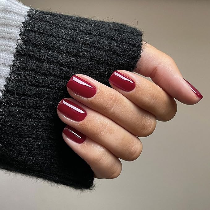 48Pcs Wine Red Press on Nails Short Square Fake Nails, Red Glue on Nails Gel Nails Press ons, Acrylic Nails Stick on False Nails for Women, Natural Handmade Thick Extra Short Nails Small Petite