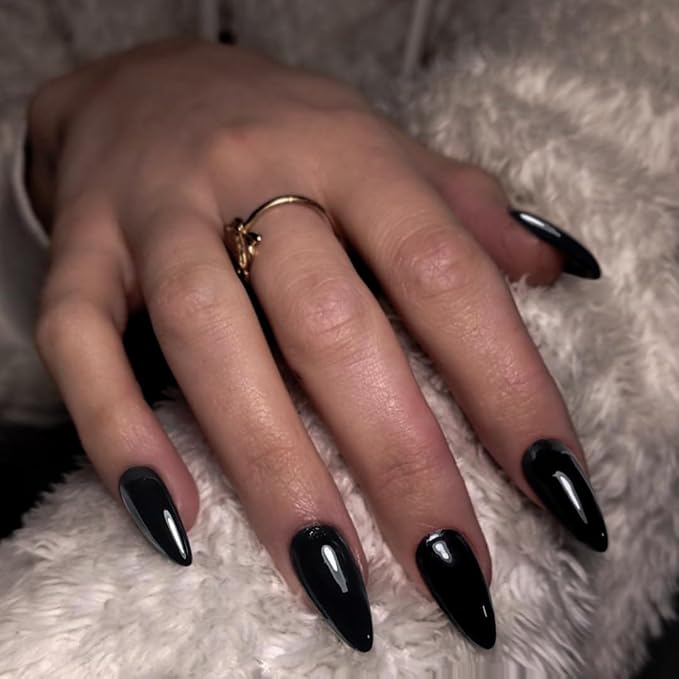- Salon-Quality Almond Nails Gel x Nails: Experience the joy of salon-quality stick on nails for women almond shape in the comfort of your own home.Black fake nails Press ons bring the sophistication and elegance of a professional salon without the hassle of appointments or spend a lot of time and money