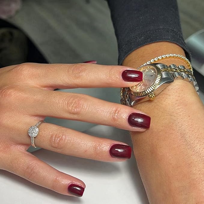 - Handcrafted Perfection: Burgundy Red fake nails short nails glue on are meticulously crafted by skilled artisans.Each short square nails press ons undergoes six layers of hand brushing,ensuring exceptional durability and resistance to chipping.Rest assured,your short press on nails square nails will last and stay vibrant for an extended period