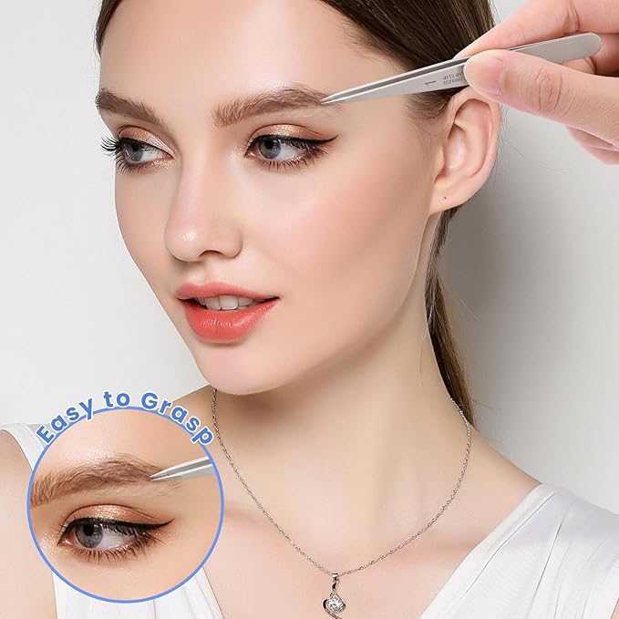 Pointed Tweezers for women Facial hair, Precision Tweezers for Eyebrows, Chin Hair,Ingrown Hair, Splinters, Glass Removal(Silver)