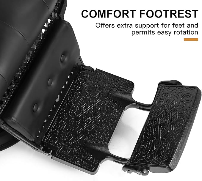 - Durable and Sturdy Construction: Equipped with heavy duty steel frame, this chair not only ensures a stable support for your customers but also provides a reliable use for long term. Chrome finished round hydraulic pump and base with classic style footrest can withstand 450 LBS, providing better stability and preventing unsteadiness from various movements. It is also designed with handrails that could free your hands and prevent you from falling down