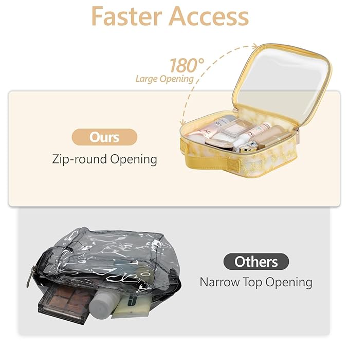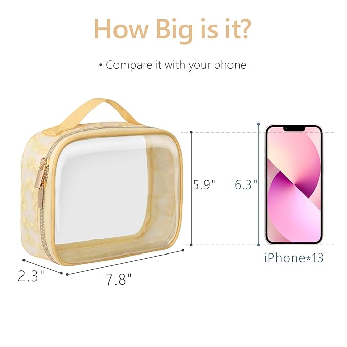 - TSA-approved & hassle-free security checks: This medium clear makeup bag measures 7.8 x 2.3 x 5.9 inches, perfectly complying with TSA’s 3-1-1 liquids rule and breeze through airport security without unpacking
