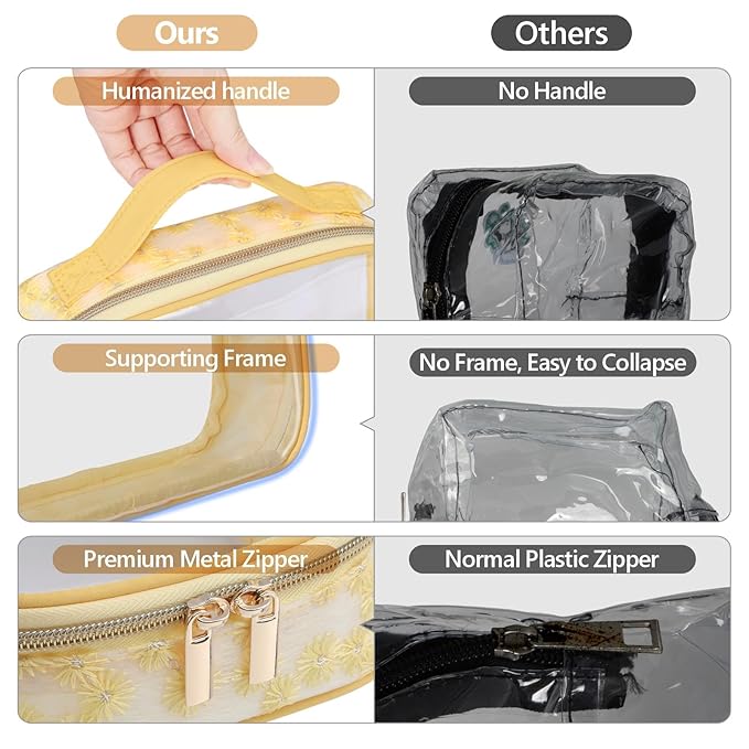 - 40% Thicker, Much Sturdier: Crafted from 0.5mm transparent PVC plastic (0.02 inches), our clear toiletry bags are thicker than most of the products in the market. Reinforced seams resist tearing, while the rugged design ensures long-lasting wear. Each bag weighs under 1 lb.—lightweight yet tough enough for carry-ons or luggage