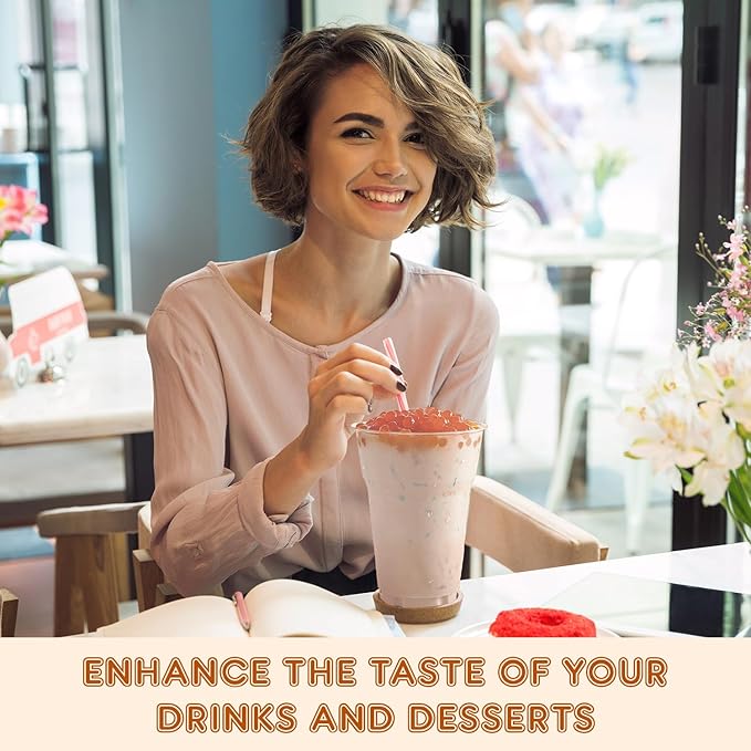 - ๐๐ง๐ซ๐ข๐๐ก๐๐ ๐๐ข๐ญ๐ก ๐๐ฎ๐ข๐๐ฒ ๐๐จ๐จ๐๐ง๐๐ฌ๐ฌ: The fruit boba pearls are filled with natural and organic Lychee goodness. You get a juicy, mouthful taste of Lychee with every bite and slurp of your favorite beverages.