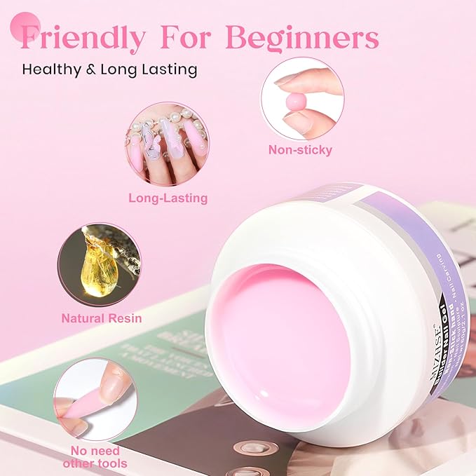 MIZHSE Solid Nail Builder Gel, 2.1 oz 60g Pink Builder Gels for Nails Non-Sticky Solid Builder Extensions Hard Gel with 24pcs Dual Forms and Silicone Pen 3D Art Manicure Set