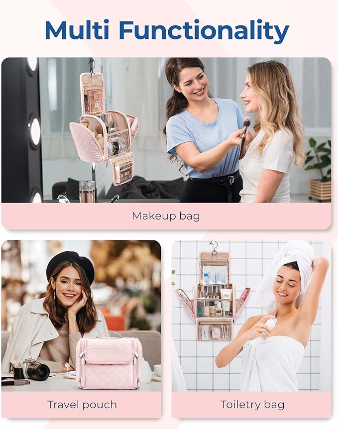 • 【Multi-functional Makeup】: This portable hanging makeup bag is a multifunctional organizer bag that combines the functionality of a makeup bag and a travel toiletry bag. It is an excellent choice for a wide range of activities, from travel, business trips, fitness routines, and beach outings to picnics and home storage. It also makes for a perfect gift for ladies, friends, and family on special occasions such as birthdays, Christmas, and Valentine's Day.