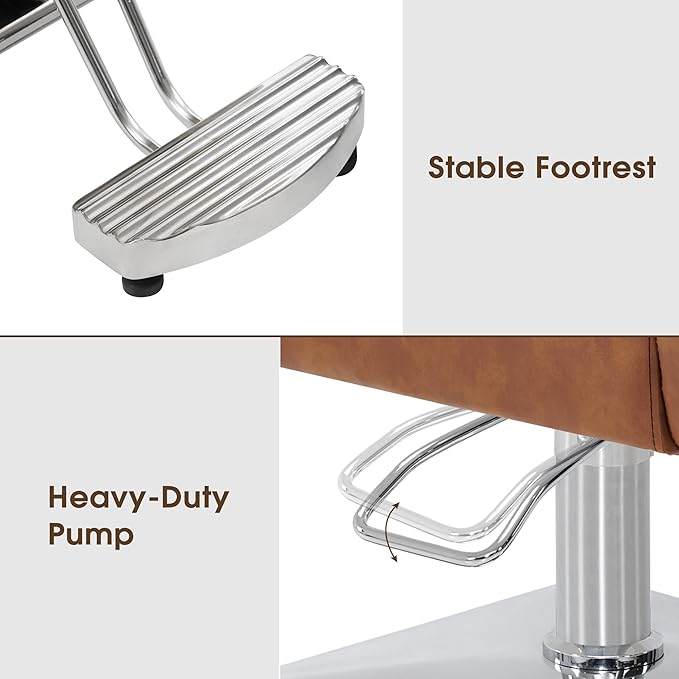 - Kindly Reminder: This salon chair has no headrest and could not recline. To prevent the chair from tipping, please ensure your clients not to step on the footrest when getting up.