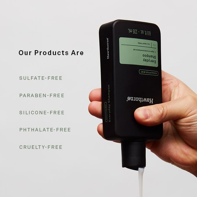 Hawthorne Men's Everyday Shampoo. For Stronger, Healthier Hair with Pure Avocado Oil and Coconut Oil. Mint and Eucalyptus Scent. Natural, Sulfate Free, Paraben Free. 8 fl. oz. 2-Pack.