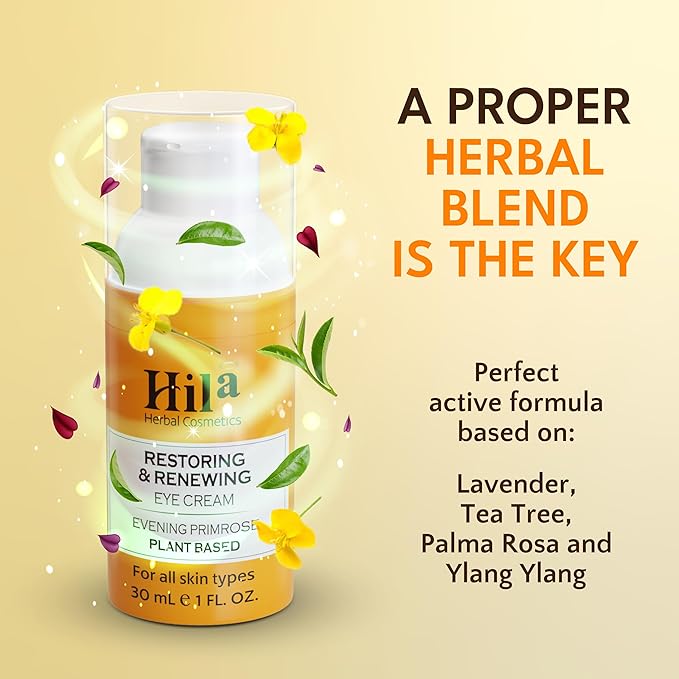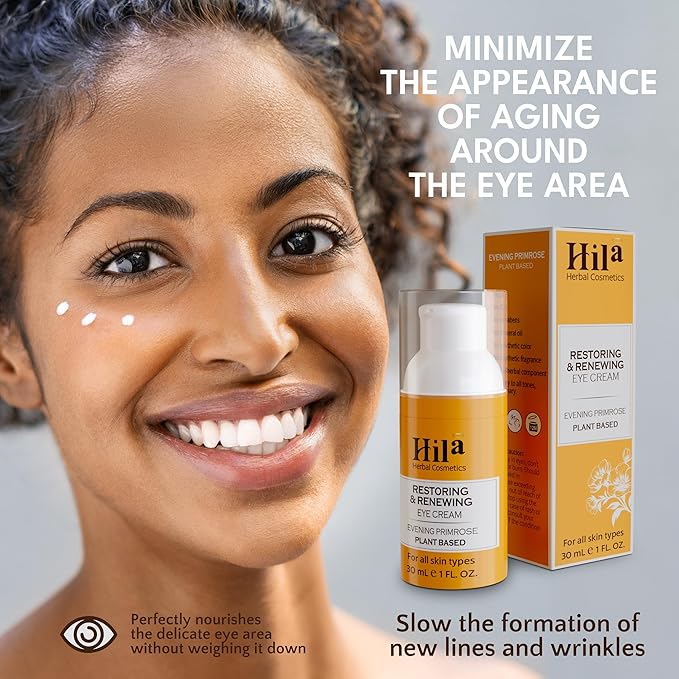 Restoration and Renewal Eye Cream – Evening Primrose Plant Based - Under Eye Cream for All Skin Types, Hydrating Eye Cream, Eye Wrinkle Cream for Women & Men - 30ml
