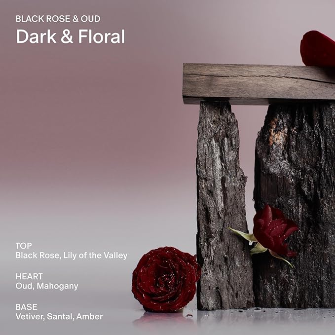 - Iconic Scents — Black Rose & Oud is dark, floral, and sensual—like bouquets of black roses and lilies blooming.