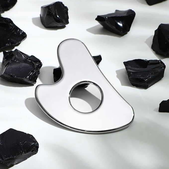 rosenice Gua Sha Facial Tool for Face Skincare Stainless Steel Gua Sha Board for Body Tensions Reduce Puffiness Festive Gifts Silver