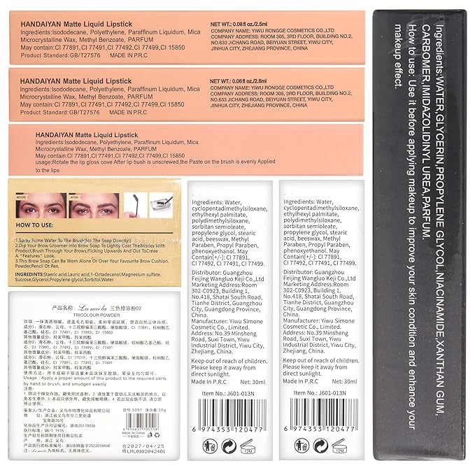 - [Makeup Set] The Christmas makeup present set for women includes Matte & Shimmer 12 Colors Eyeshadow Palette, Full Coverage Nude & Buff Beige Foundation, 3PCs Liquid Lipsticks, Face Primer, Highlighter & Contour & Blusher 3 in 1 Makeup Palette, Waterproof Cosmetic Bag, Eyebrow Soap set, Dual-ended Eyebrow Pencil, Winged Eyeliner Stamp, Waterproof Mascara, Makeup Brush & 2PCs Makeup Sponges. It can meet all the beginners’ or professional makeup artists’ needs for daily makeup.