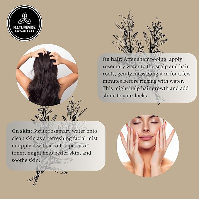 - ✅ Naturevibe’s Rosemary Water is a Hydrosol water that has been used for centuries in hair and skincare.