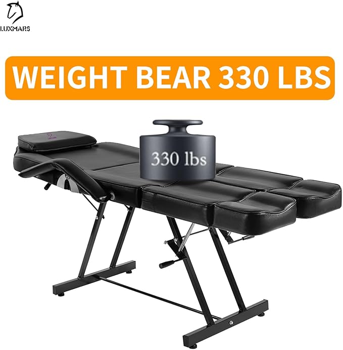 - ✔【 Multi-Purpose Tattoo Bed】 Tattoo bed with removable head pad, with face hole, easy to massage. Adjustable backrest and leg support can meet the needs of different customers. Such as beauty salon, tattoo, massage, facial, eyelashes