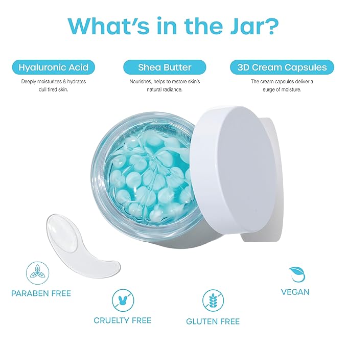 - Instant Hydration and Dry Skin Relief: Our Hyaluronic Acid-infused Capsule Creams offer immediate hydration, relieving dryness and discomfort. These my. ingredients cream capsules burst upon application, flooding your skin with moisture to replenish and revitalize.