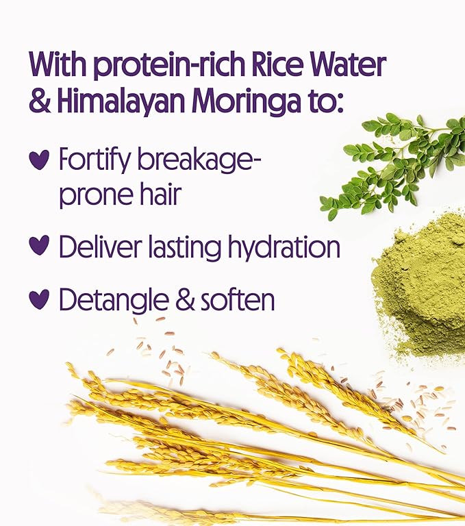 - MADE WITH 98% NATURALLY DERIVED INGREDIENTS: Dermatologist Tested and infused with a protein-rich Rice Water & Moringa blend that helps fortify hair