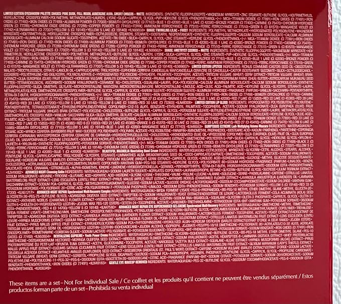 - Product Benefits : Provides a variety of skincare and cosmetic products, including Estee Lauder's Advanced Night Repair and a limited edition eyeshadow palette, with additional skincare items like a gentle eye makeup remover and nourishing hand cream. Provides a variety of skincare and cosmetic products, including Estee Lauder's Advanced Night Repair and a limited edition eyeshadow palette, with additional skincare items like a gentle eye makeup remover and nouri… See more