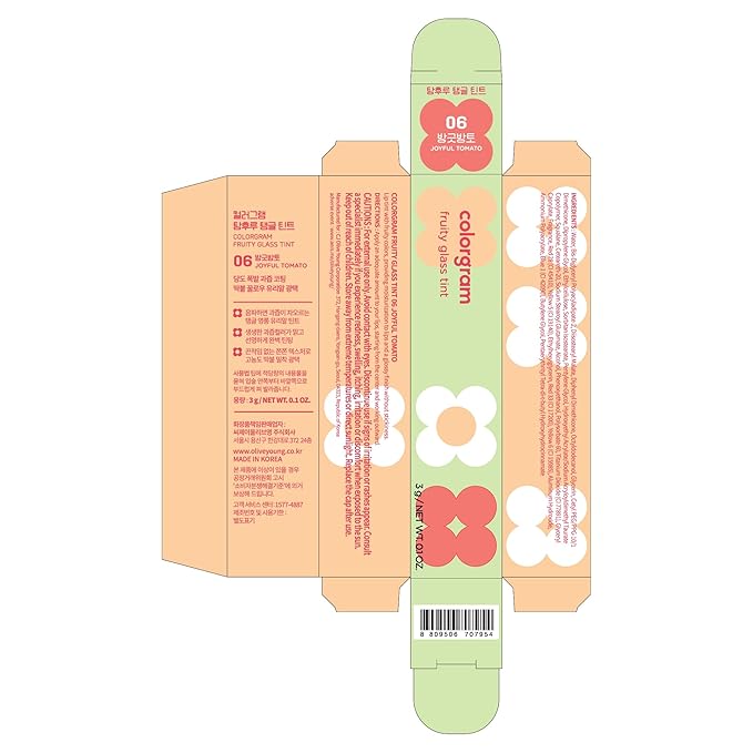 COLORGRAM Fruity Glass Tint 06 Joyful Tomato | | Korean Long Lasting & Waterproof Lip Stain l Glossy Dewy Lip Gloss, Highly Pigmented Bright Red Orange Shade with Glowing effect 0.11 Oz.