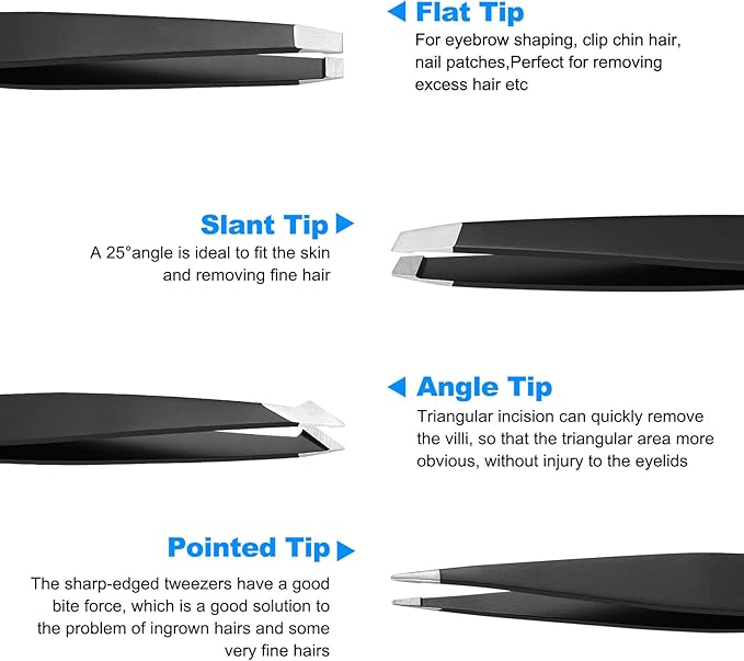 - Multi-Use: Tweezers with different tips remove hair from different parts of the body. whether they are fine, smooth, thin, thick or roug