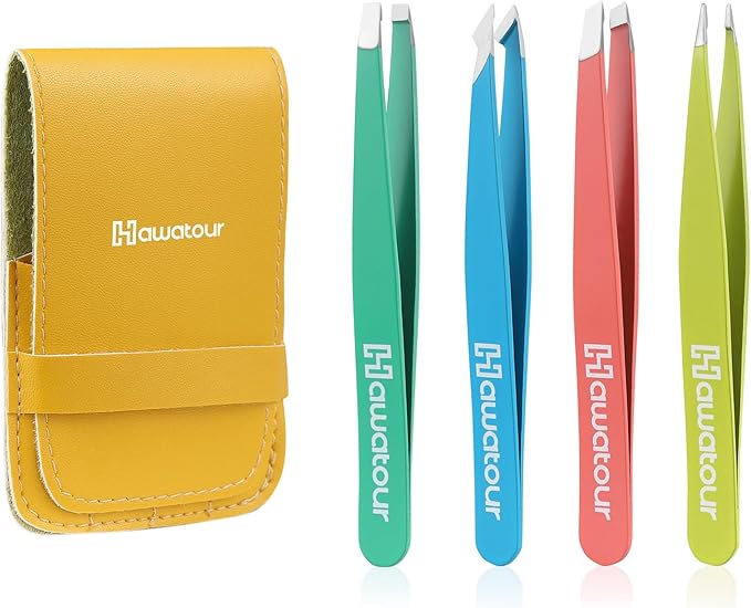 HAWATOUR Tweezers Set, 4Pcs Eyebrows Tweezers for Women, Great Precision for Ingrown Hair, Splinter, Facial Hair Removal, Multicolored