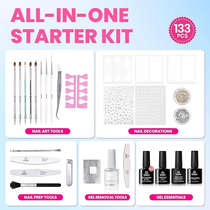 - Perfect Gifts for Women: If you are looking for birthday, anniversary, gifts for your family or friends, this 133 pcs gel nail kit will be a great choice. Warning: This product is professionally formulated and should be used only for nails. Read directions for use carefully. Avoid contact with eyes, mouth, and skin. When you encounter any problems, please feel free to contact us.