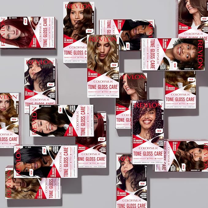 Revlon ColorSilk Tone + Gloss + Care Demi Permanent Hair Color, Dye Kit with Leave-In Scalp and Haircare Serum, 2x Shinier, 4x Stronger, 1 Black, 4.5 fl oz