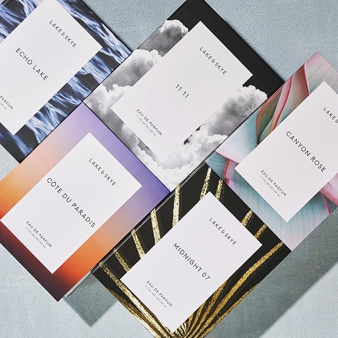 Lake & Skye 6 Piece Discovery Set – Includes 11 11, 11 11 Azure, Apaaray, Midnight 07, Saffron Dusk and Santal Gray – 0.06 fl oz ea (2 ml ea)
