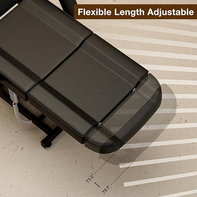 SyyBhb Electric Height Adjustable 21'' - 33'' Massage Table, 73'' - 79'' Length Adjustable Tattoo Chair for Tall Clients, Electric Esthetician Bed 3-Section Folding 440lbs, Black