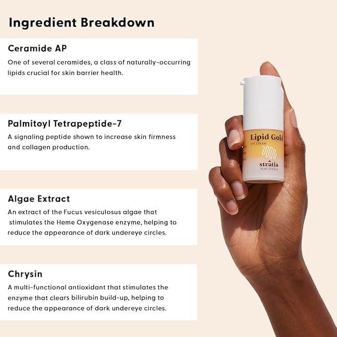 Stratia Lipid Gold Eye Cream Moisturizer & Anti-Aging Skin Care for Dark Circles, Fine Lines, Wrinkles, & Under Eye Brightener, 0.5 fl. oz