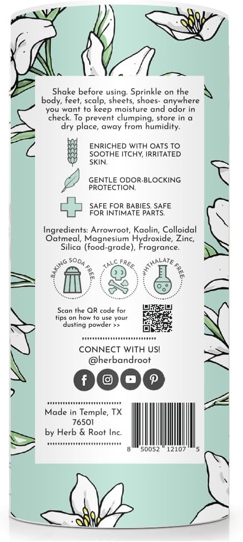 - Experience the soothing touch of Jasmine Talc-Free Dusting Powder, a luxurious body powder for women, crafted with organic arrowroot powder and oats to keep your skin fresh and comfortable all day.