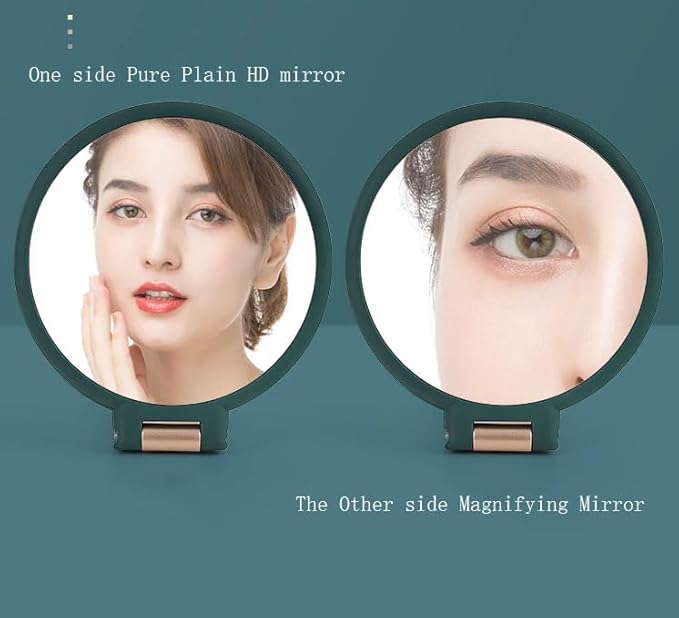 - 3-in-1 Flexible Design: Equipped with a 360° rotatable base and a foldaway handle, this allows it to be easily used as a handheld mirror, placed on a tabletop, or hung on a wall.