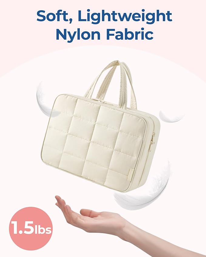 - ๐๐ฎ๐๐๐ฒ ๐๐๐ญ๐๐ซ๐ข๐๐ฅ๐ฌ: Hanging Toiletry Bag is made of puffy fabric and weighs only 1.1lbs-1.5 lbs. Super soft, lightweight nylon fabric provides all-day carry comfort