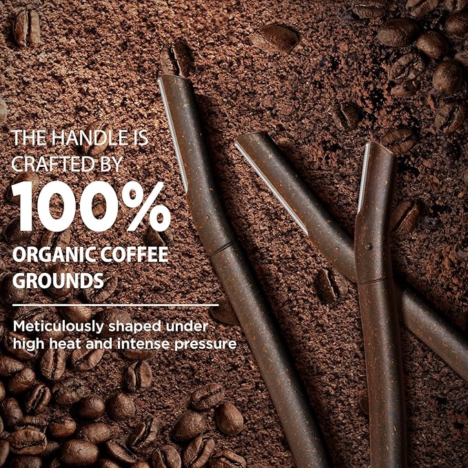 - 【Coffee Grounds Based Handle】The handles are crafted by 100% organic coffee grounds. You can still catch a. subtle hint of coffee aroma lingering. It meticulously shaped under high heat and intense pressure
