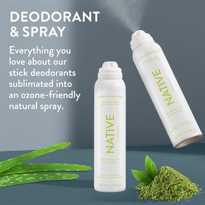 Native Deodorant & Body Spray Contains Naturally Derived Ingredients | Deodorant for Women and Men, All Day Odor Protection, Aluminum and Hydrocarbon Propellant Free | Aloe & Green Tea