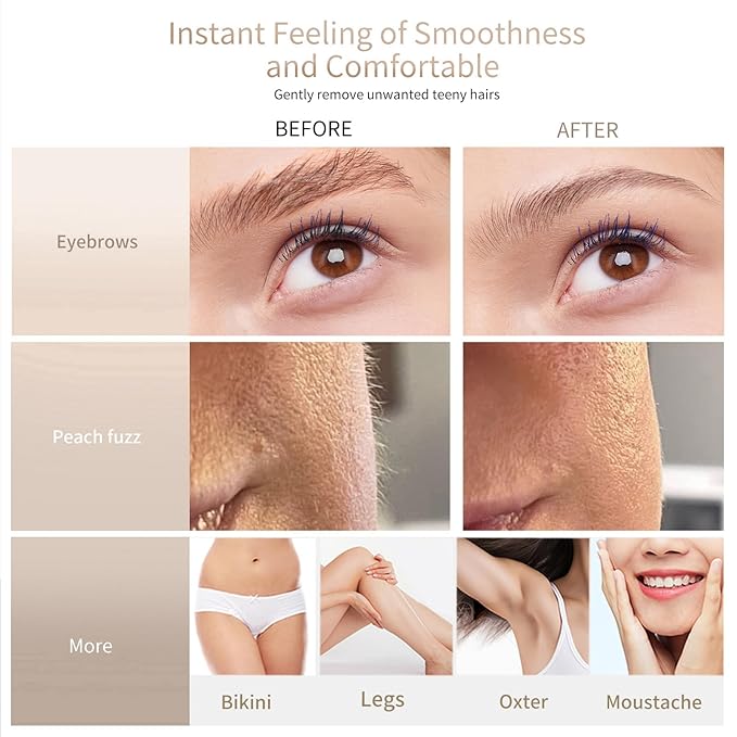 - Convenience and Versatility: This multifunctional Dermaplaning Tool can be used on various areas of the face, not just the eyebrows. It effectively removes peach fuzz, upper lip hair, facial and body hair, underarms, bikini, dead skin cells and more, giving you smoother skin for perfect makeup application