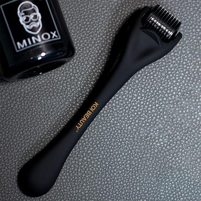 Koi Beauty Derma Roller Titanium Microneedle Roller, 540 Microneedling Roller, Premium Micro Needling Roller for Men Women, Micro Needle Roller Jet Black