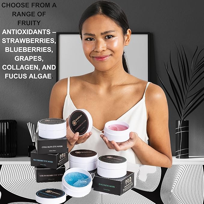 - 🌟 INSTANT RADIANCE: Witness visible improvements in just a few uses. Our cooling gel formula renews your eyes, dark circles and fatigue. Experience a soft, moisturized effect, perfect for a beauty and self-care regimen. Choose from a range of fruity flavors – strawberries, blueberries, grapes, collagen, and fucus algae. A taste of the exotic in every patch. Enhance your self-care and skincare experience with diversity.