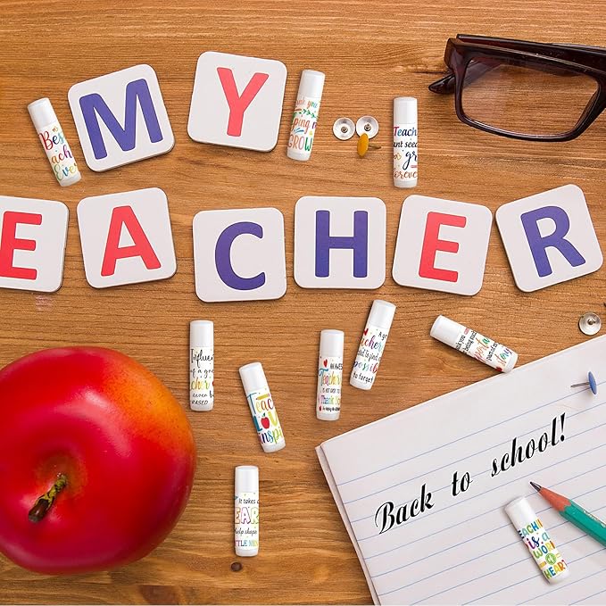 Dunzy 50 Pcs Thank You Gift Lip Balm Bulk Baby Shower Party Favors Bridal Shower Favor Lip Care with Assorted Fruit Flavors Thank You Lipstick for Guest Basket Gift Stuffer (Teacher)