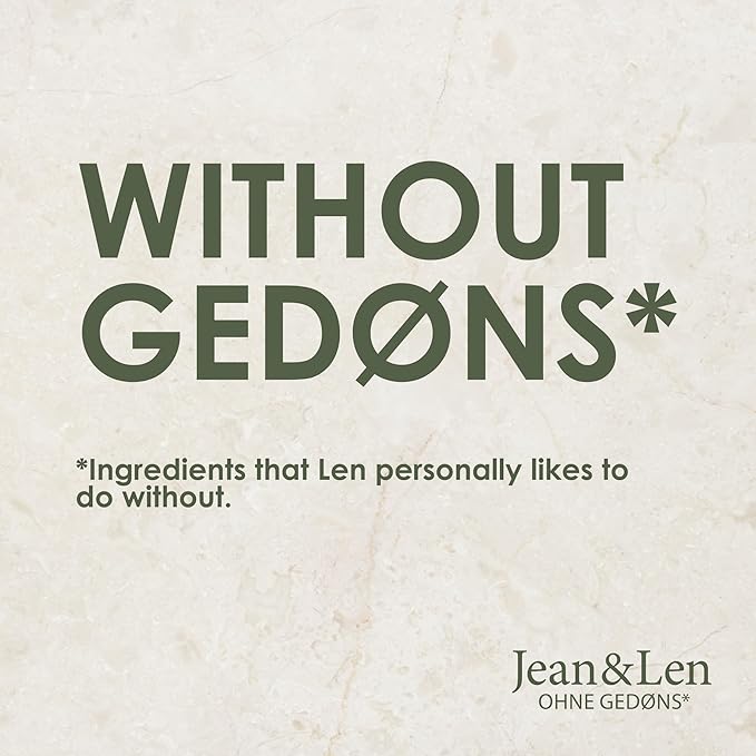 - WITHOUT GEDØNS*: For us, Gedøns* are things and especially ingredients, that our founder Len wants to avoid in our products. These include parabens, silicones and animal ingredients. We do not claim that these ingredients are harmful or bad. We simply don't want certain substances in our products because we know many of you don't want them either.