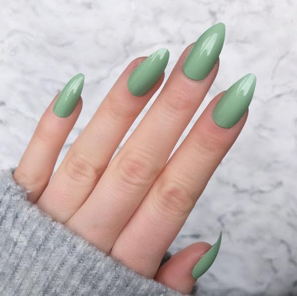 Wooyas Press on Nails Almond, Matcha Green Medium Handmade Gel Fake Nails Reusable, Soft Color Lightweight Natural Glossy in 12 Sizes - 24 Pcs Soft Gel Glue On Nails Kit