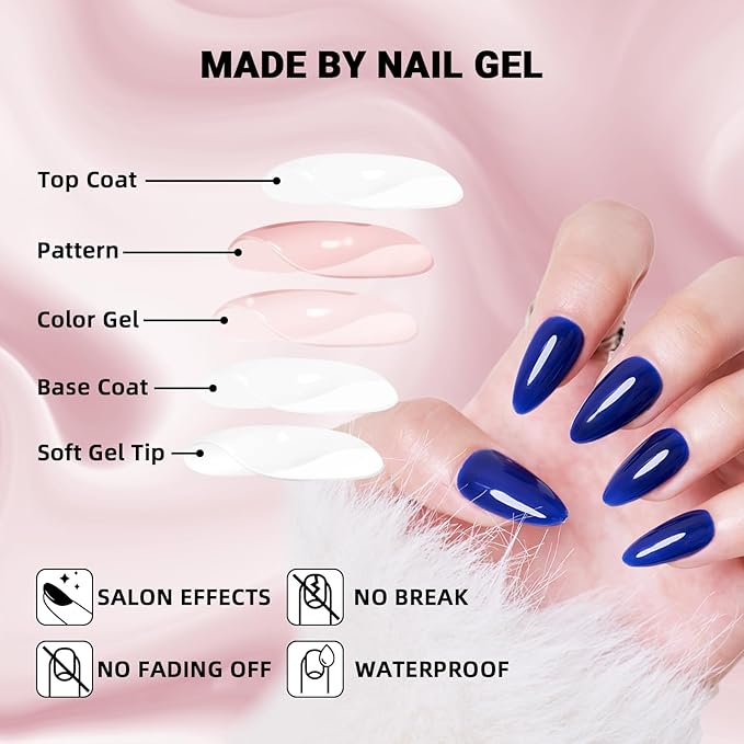 Wooyas Press on Nails Medium, Royal Blue Nails Handmade Almond Fake Nails Reusable, Non-breakable Fit Perfectly Glue On Nails Glossy in 12 Sizes-24 Pcs Salon Quality Soft Gel Nail Kit