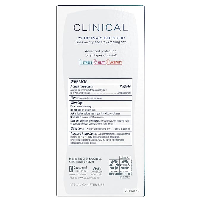 - FIGHTS 3 TYPES OF SWEAT: STRESS, HEAT & ACTIVITY – This Clinical Strength formula is designed to handle the unique challenges posed by each type of sweating, ensuring you remain dry and confident no matter the circumstances.