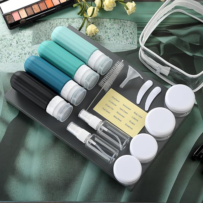 16 Pack Travel Bottles for Toiletries, Leakproof Travel Containers for Toiletries, TSA Approved Silicone Travel Accessories Squeezable Refillable 3oz for Shampoo Conditioner Lotion