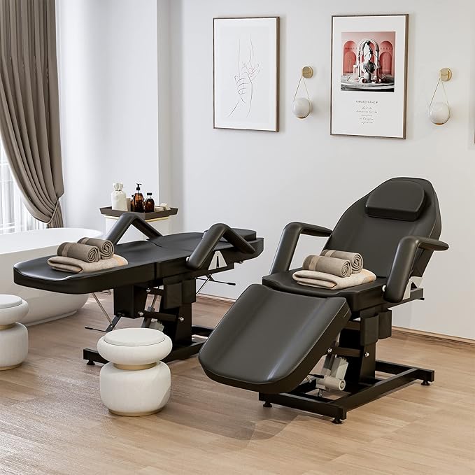 SyyBhb Electric Height Adjustable Esthetician Chair Facial Bed, 3-Section Folding Lift Tattoo Chair Bed Massage Table for Spa, Lash Extension, Microblading, Wax, Medical Treatment, Black