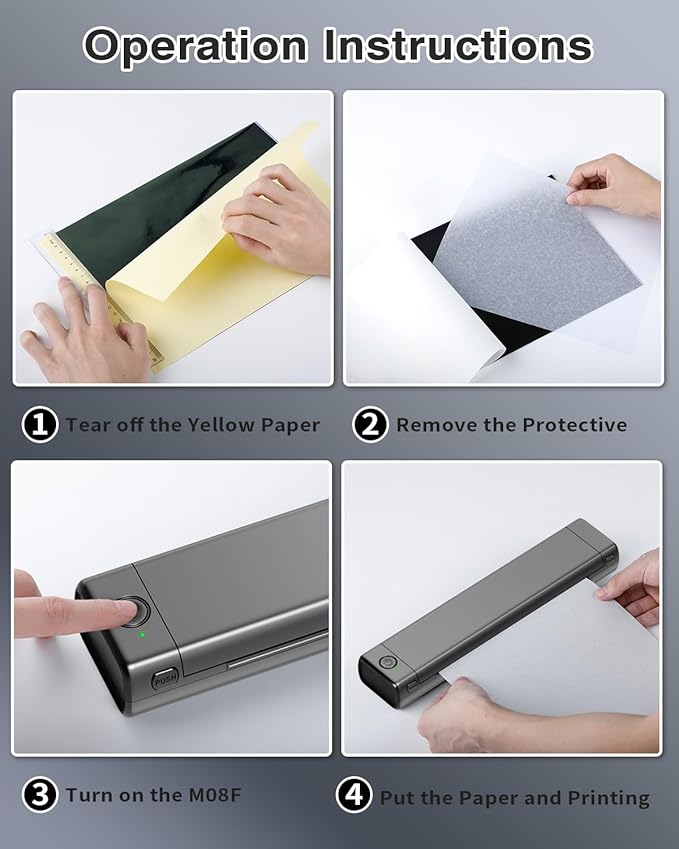 - Long-Lasting & High-Capacity Battery: Phomemo M08F Wireless Tattoo Transfer Printer is equipped with a 1200mAh high-capacity battery, which can print 140 pages of light-coloured images or text on a single charge. In addition, it supports power bank or car charging, no need to worry about charging.